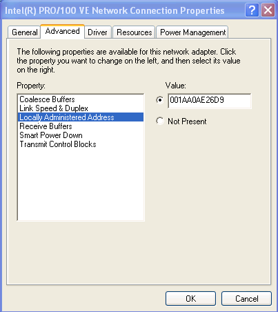 Địa chỉ 001AA0AE26D9 này là điạ chỉ MAC cho NIC của bạn, bạn chỉ cần thay thế địa chỉ MAC này thành địa chỉ MAC mới và khởi động lại máy tính .