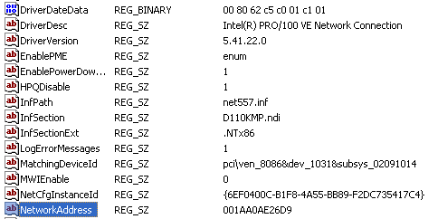 Bạn tìm tiếp mục NetworkAddress có địa chỉ là : 001AA0AE26D9