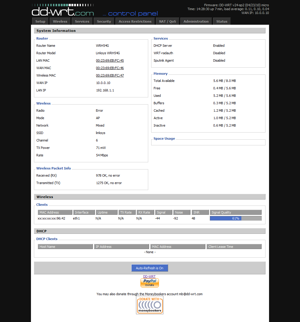 Chi phí cho một Wireless router “xịn” với những tính năng phức tạp như: DMZ , Quản lý băng thông, Hệ điều hành build-in, Shell , Iptables Firewall , VPN , Radius ... là khá cao ( ví dụ như giá của các Wireless router LinkSys hoặc Cisco dòng có các tính năng trên giá không dưới 4 đến 5 triệu đồng, thậm chí hàng chục triệu đồng ). Thủ thuật sau sẽ giúp bạn có được một Wireless router với hầu hết các tính năng “mắc tiền” trên mà không tốn một đồng bạc nào.