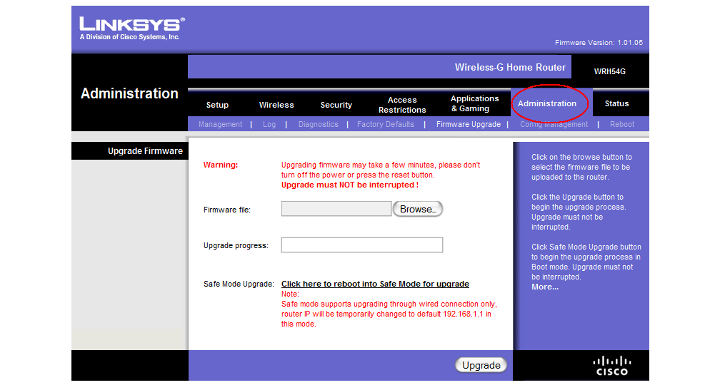 Bước 5: vào Mục Administration -> Firmware upgrade