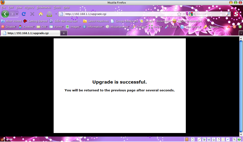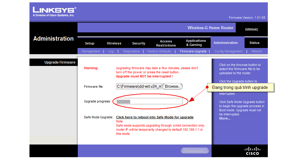 Chú ý: Dù quá trình Upgrade đơn giản và khá an toàn nhưng bạn tuyệt đối không tắt trình duyệt khi đang Upgrade hoặc rút nguồn điện cấp cho Wireless router ,nếu không thiết bị của bạn có thể bị hỏng rất khó phục hồi